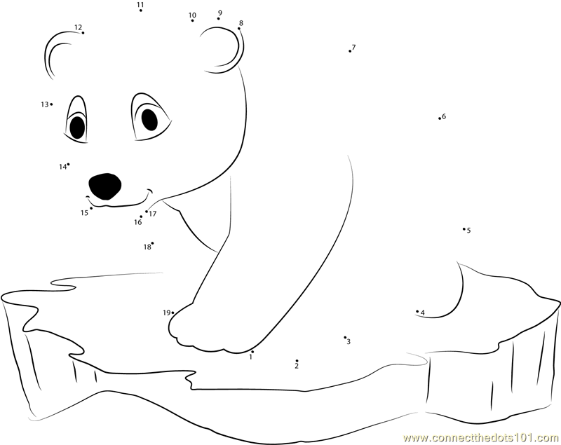 Little Polar Bear on Ice Surface Dot to Dot Worksheet