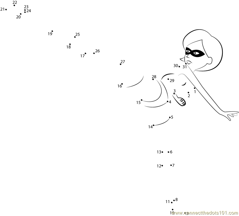 Elastigirl from Incredibles Dot to Dot Worksheet