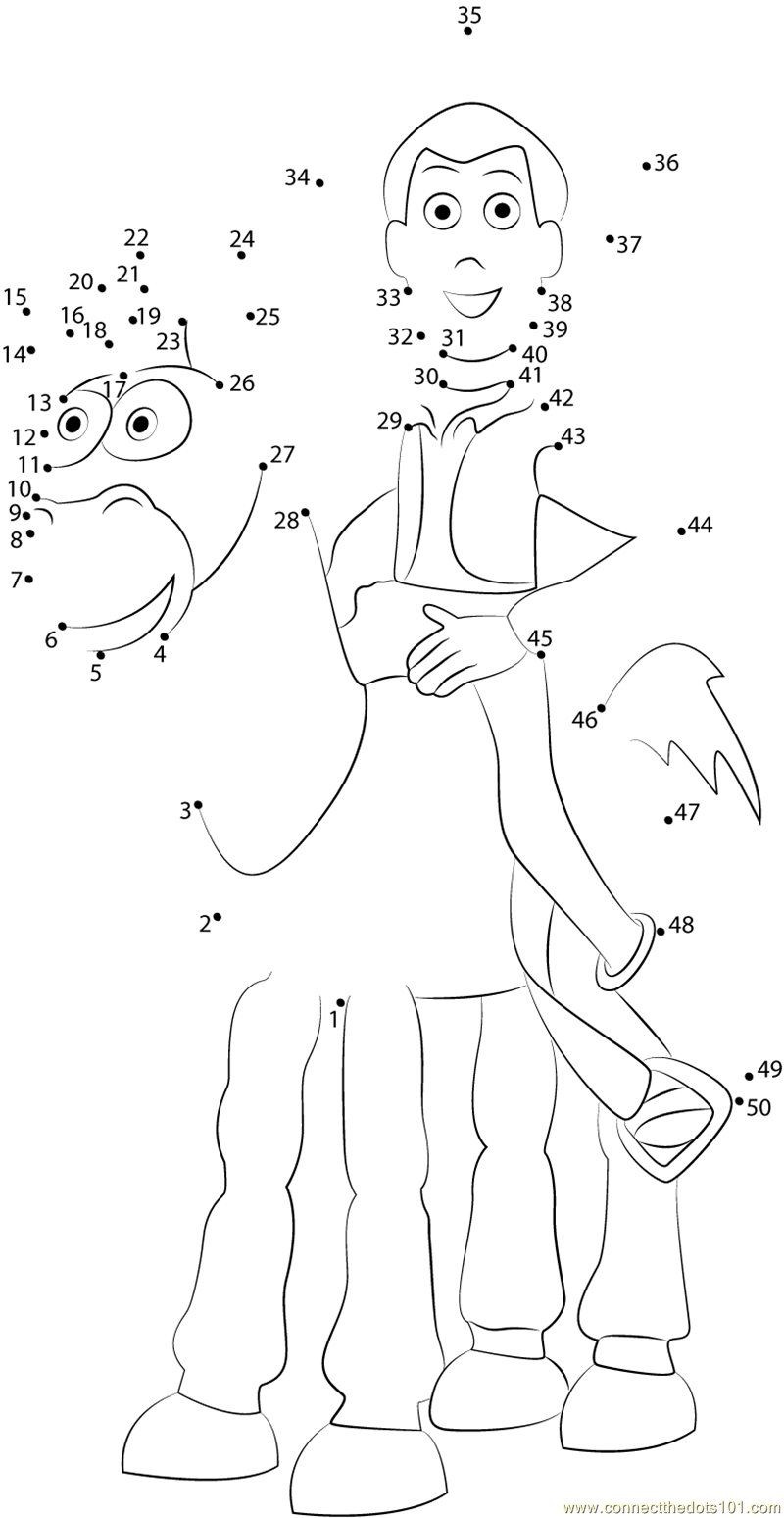 Woody sitting on Bullseye Dot to Dot Worksheet