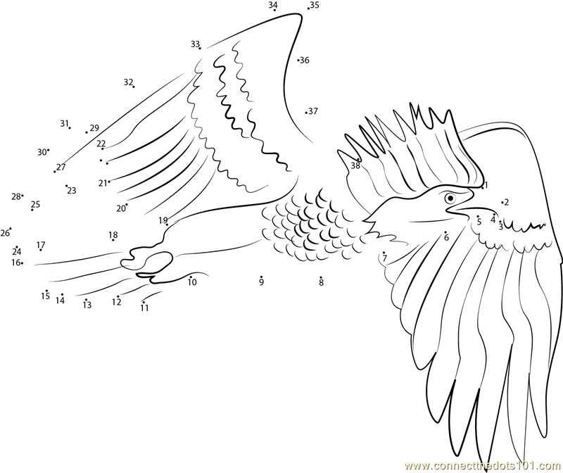 Bald Eagle Spiked Hair Color Dot to Dot Worksheet