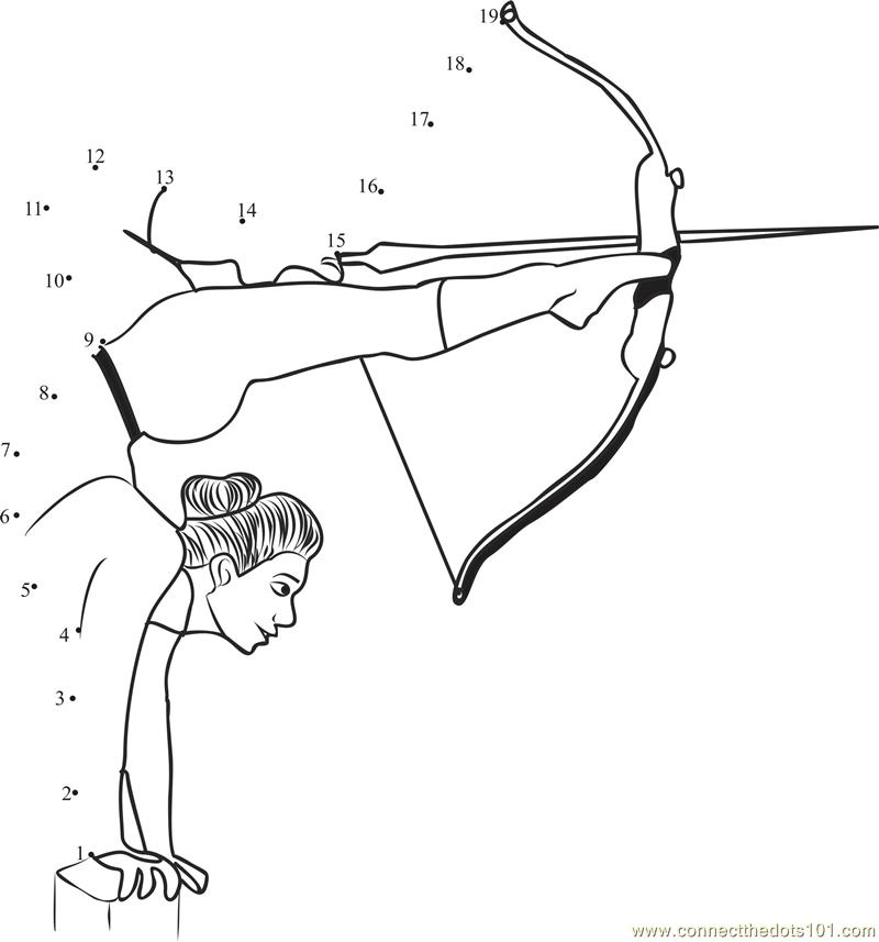 Women shooting Arch with her feet Dot to Dot Worksheet
