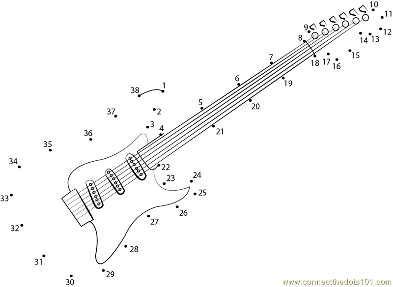 More Guitar dot to dot printable worksheets