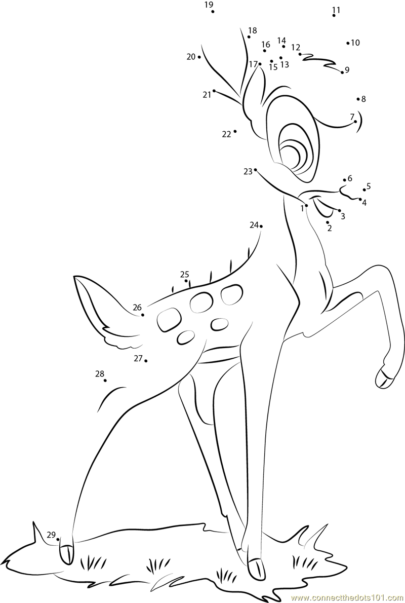 More Bambi dot to dot printable worksheets