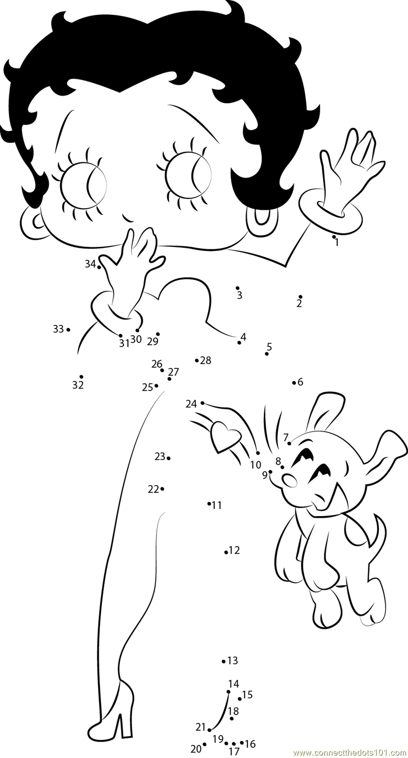 Betty Boop with her Little pet - Connect the Dots for Kids