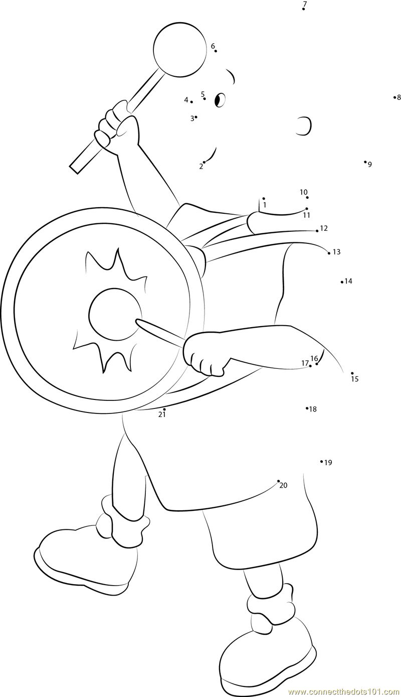 Caillou playing Drums Connect the Dots worksheet