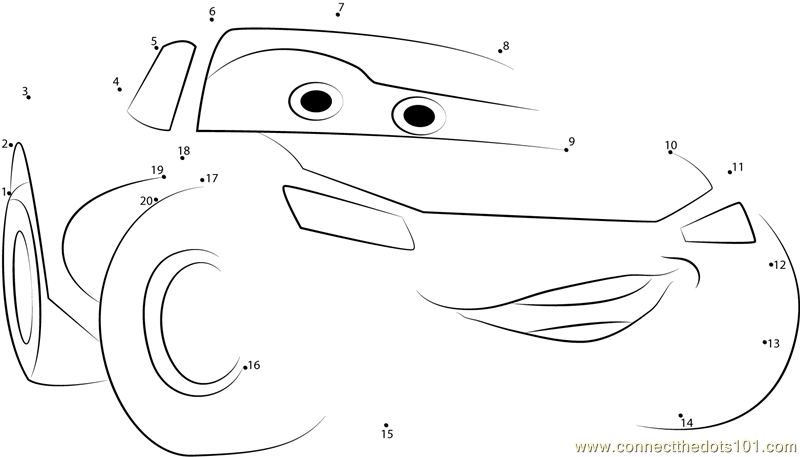 More Cars Disney dot to dot printable worksheets