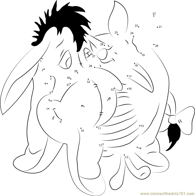 Eeyore hugs Piglet - Connect the Dots for Kids