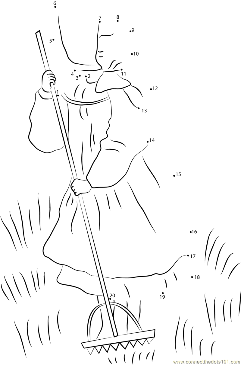 Holly Hobbie doing Farm Work Connect the Dots worksheet