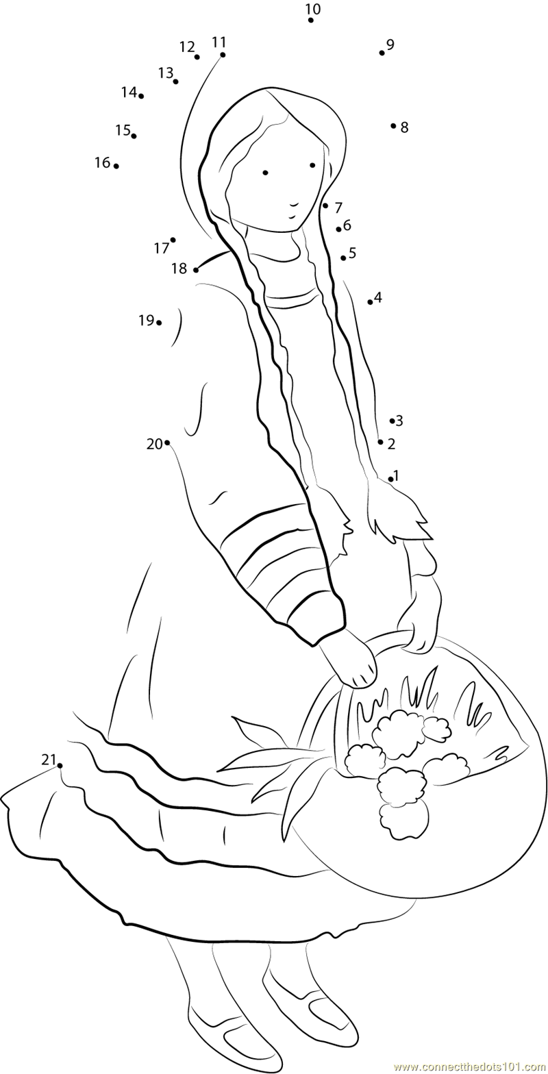 Holly Hobbie with Flower Basket Connect the Dots worksheet