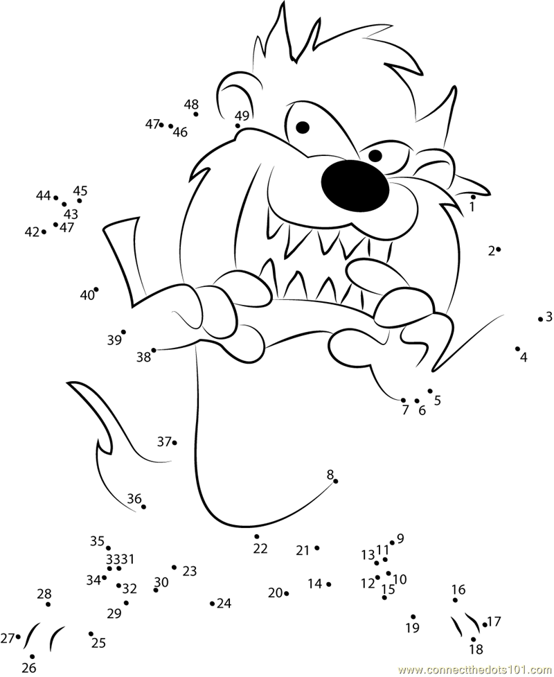 Tasmanian Devil Smiling Connect the Dots worksheet