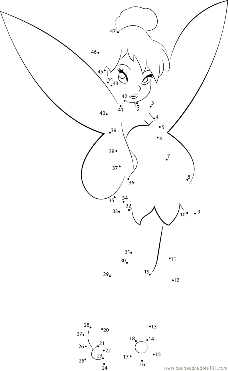 More Tinker Bell dot to dot printable worksheets