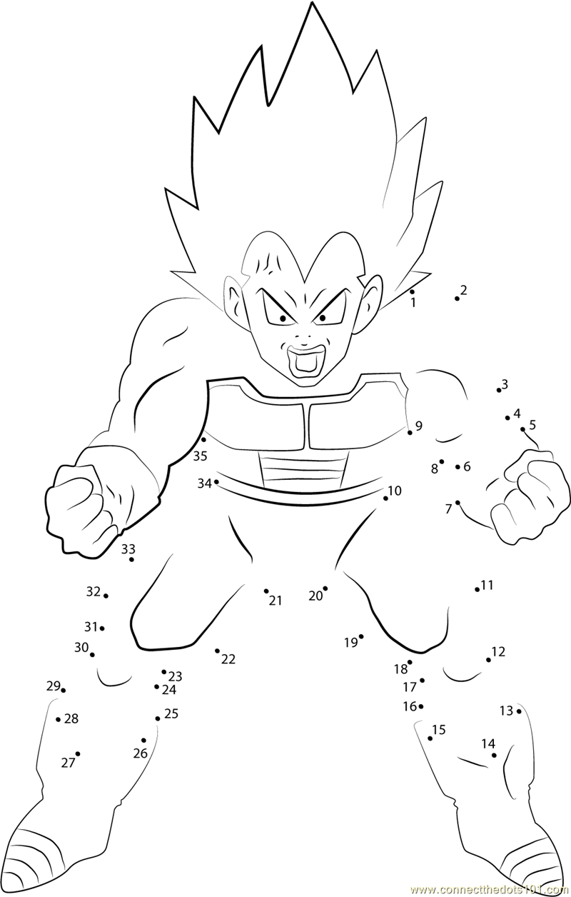 More Vegeta dot to dot printable worksheets