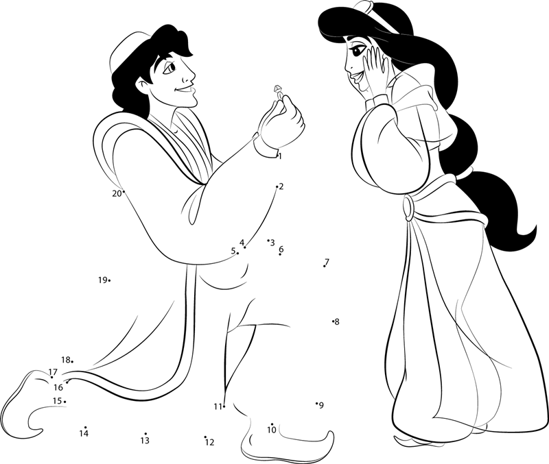 Aladdin Propose Princess Jasmine - Connect the Dots for Kids