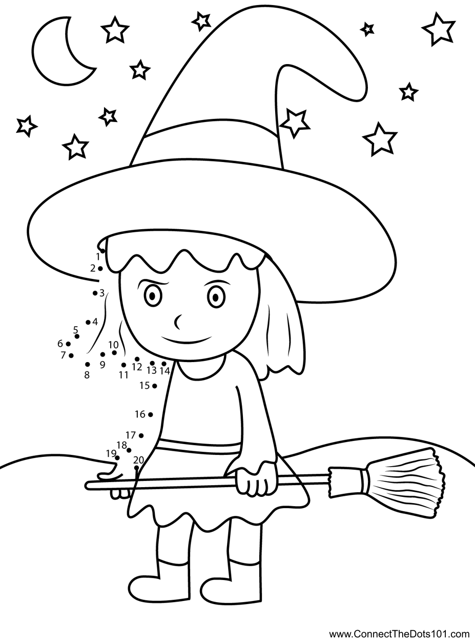 Witch Girl With Broom - Connect the Dots for Kids