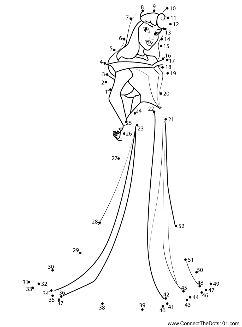 Aurora Wearing Long Dress Connect the Dots worksheet