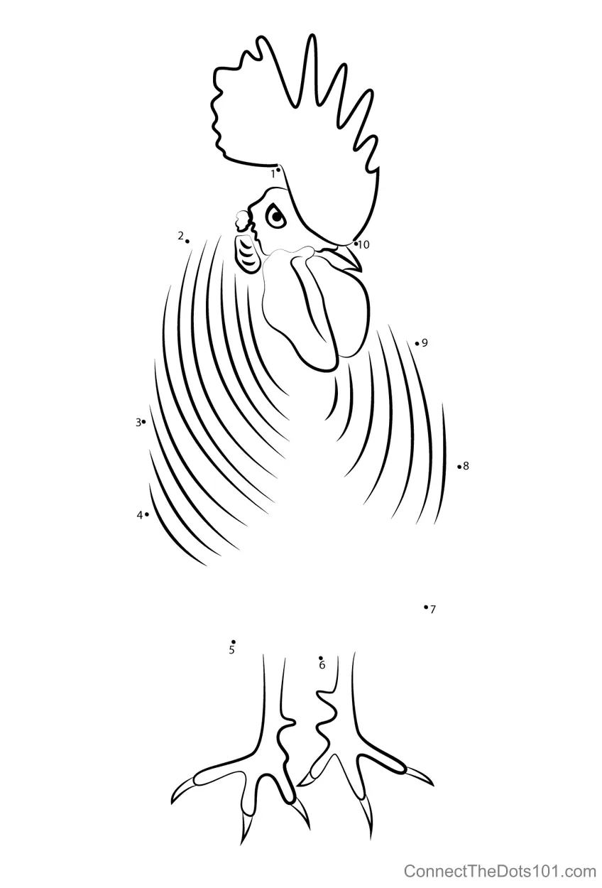Angry Rooster Strutting Along - Connect the Dots for Kids