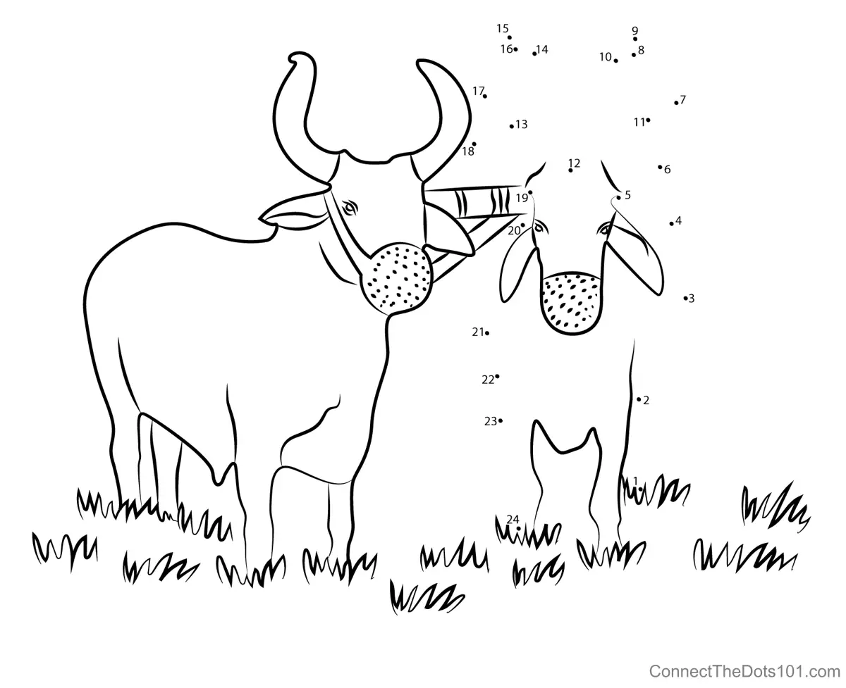 Numbers Game Two Oxen - Connect the Dots for Kids