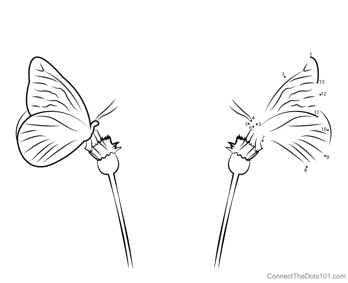 Two Butterflies Flying Near Flowers Connect the Dots worksheet