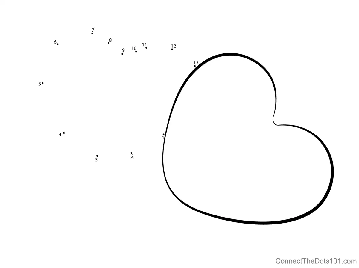 Connect Numbered Points for Heart - Connect the Dots for Kids