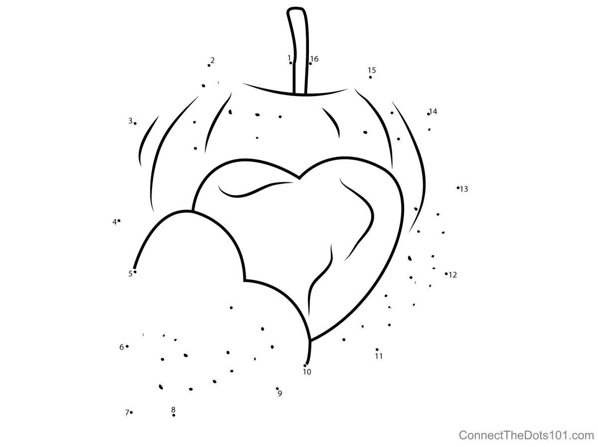 Apple Heart Shape Point Sequence - Connect the Dots for Kids