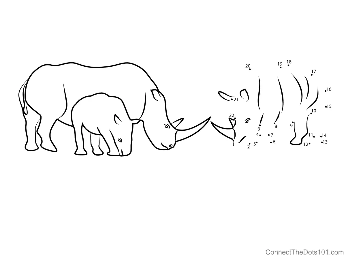 Rhinoceros Family Wild Creature - Connect the Dots for Kids