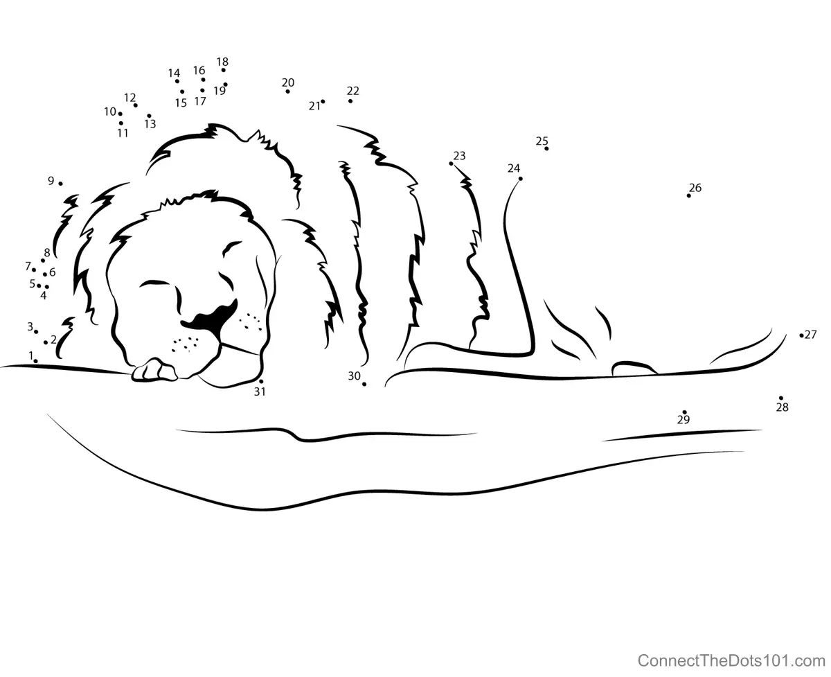 Peaceful Lion Napping Scene - Connect the Dots for Kids