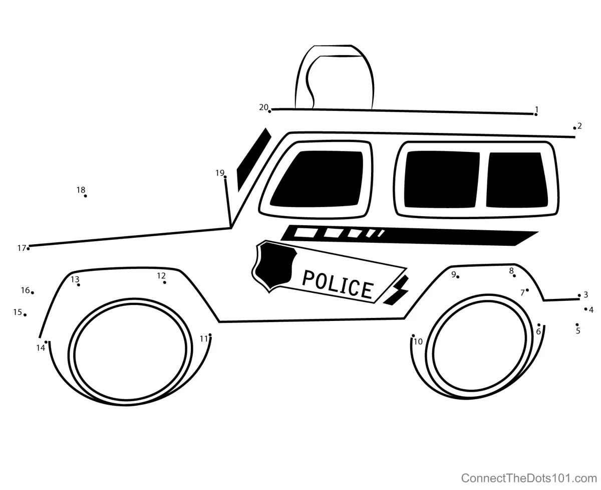 Police Jeep Formation Game - Connect the Dots for Kids