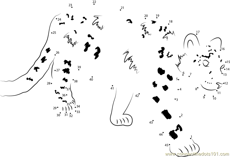 More Snow Leopard dot to dot printable worksheets