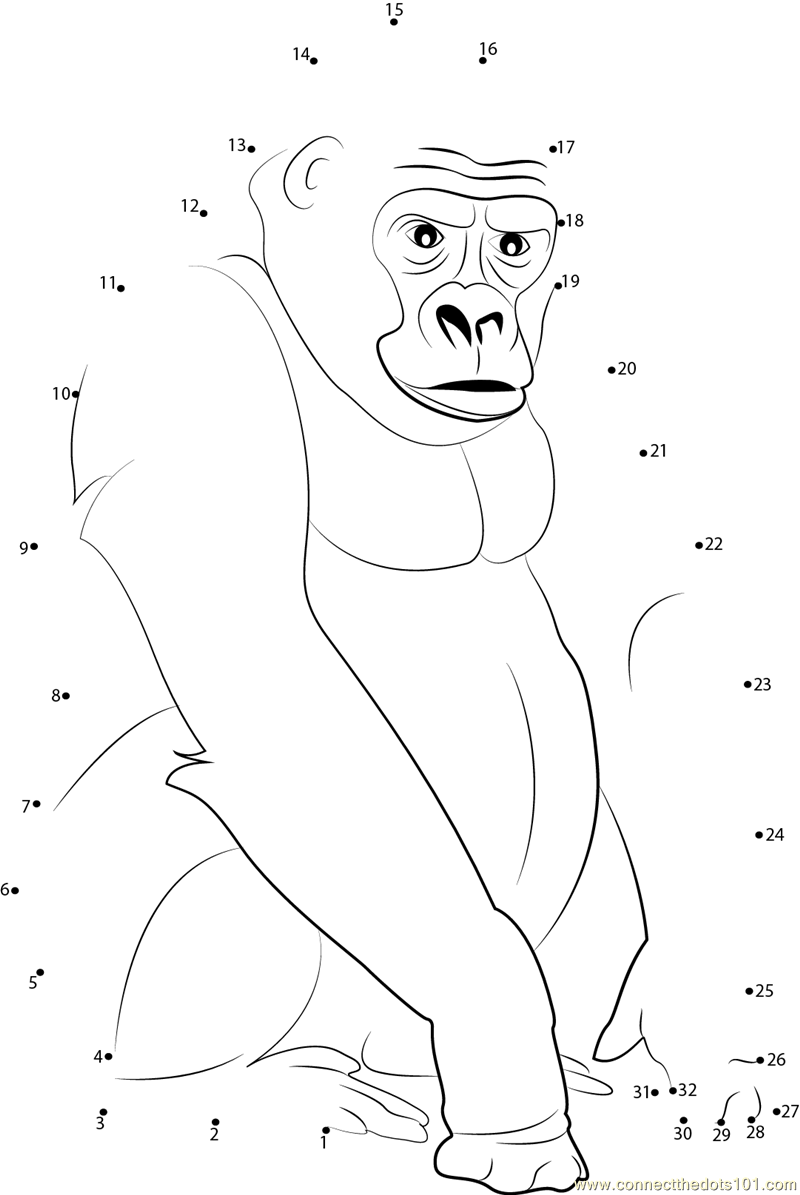 Male Silverback Gorilla - Connect the Dots for Kids