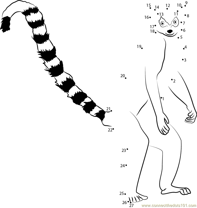 Standing Ring Tailed Lemur Berenty - Connect the Dots for Kids