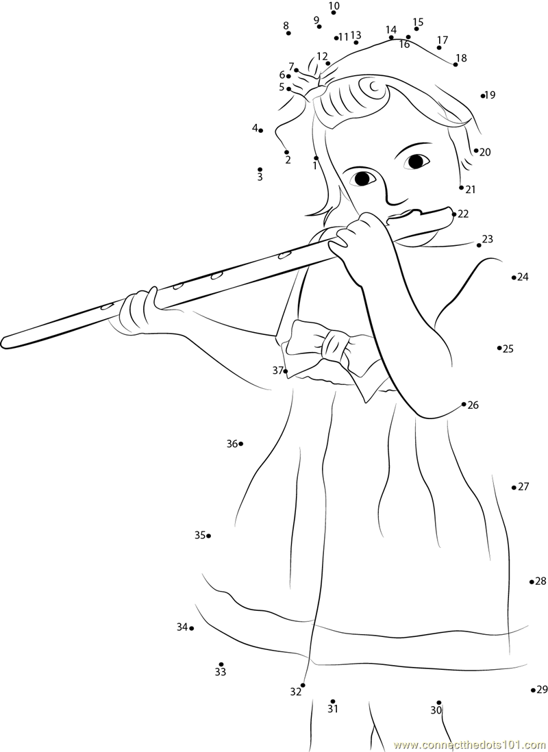 Kid Girl Playing Bansuri - Connect the Dots for Kids
