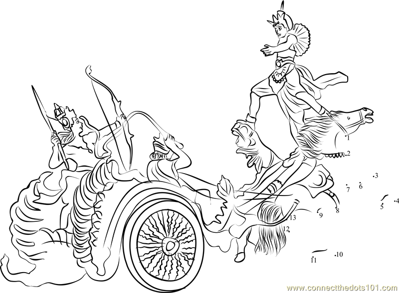 Ravana Challenging Rama while Standing on the Heads of Terrified Horses Connect the Dots worksheet