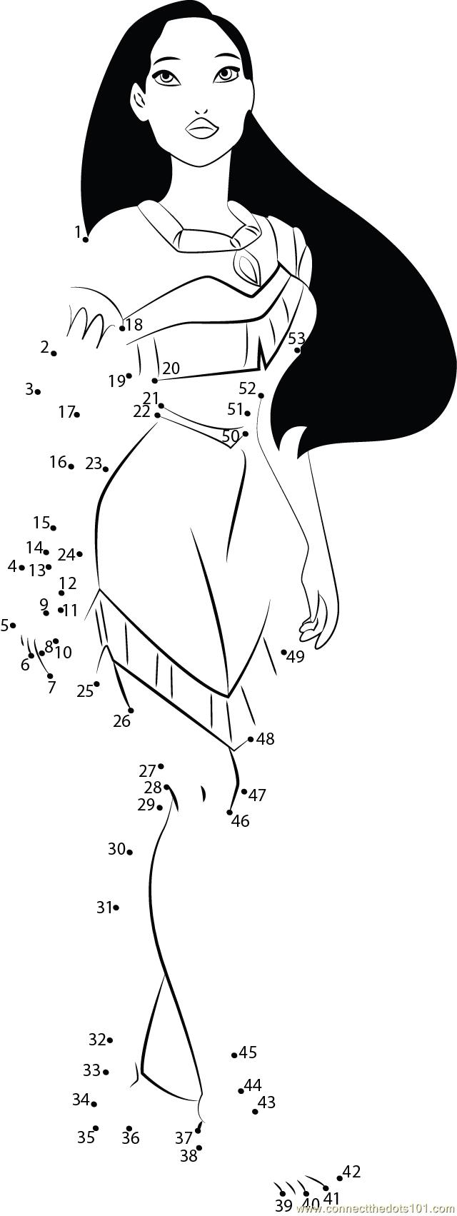 More Pocahontas dot to dot printable worksheets