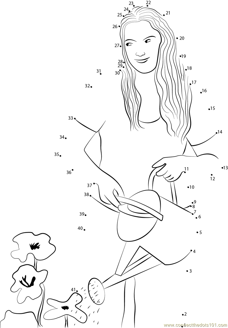 Girl Giving Water to Flowers - Connect the Dots for Kids