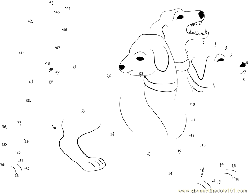 More Cerberus dot to dot printable worksheets