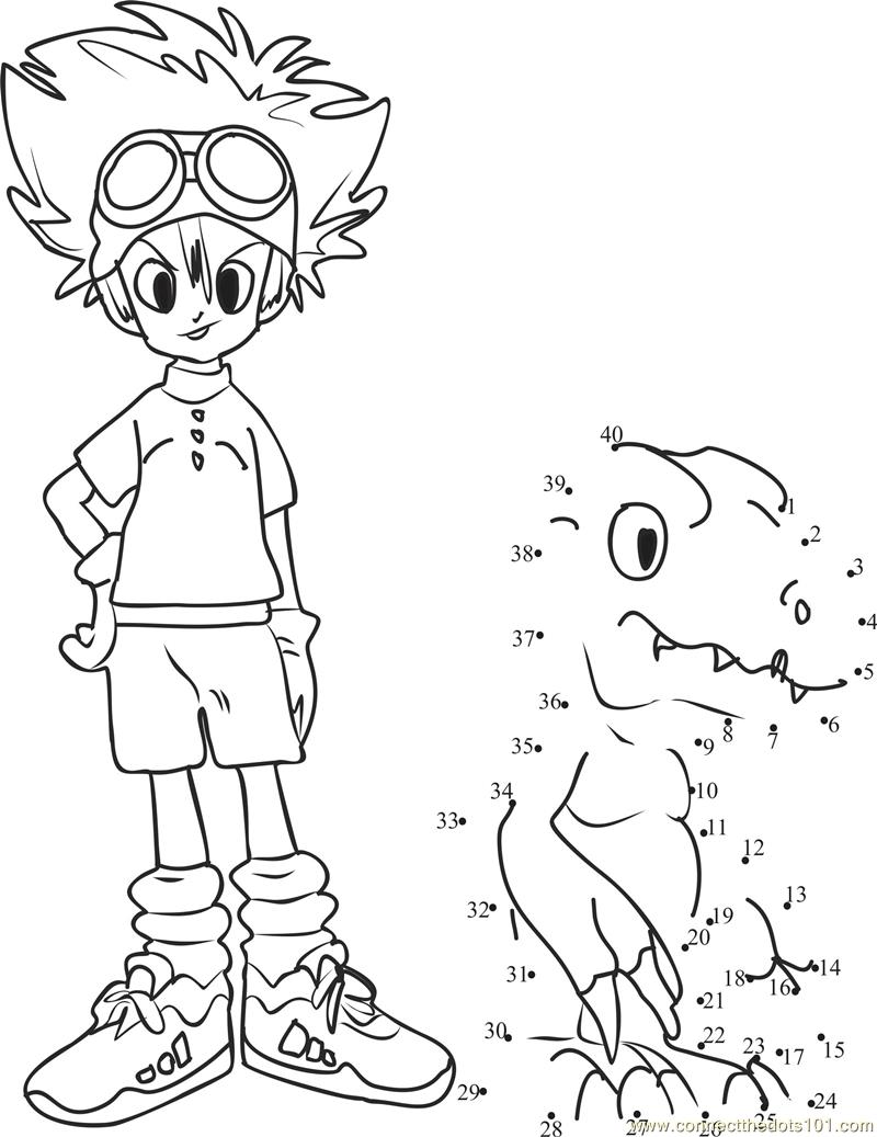 Tai Kamiya and Agumon Digimon Connect the Dots worksheet
