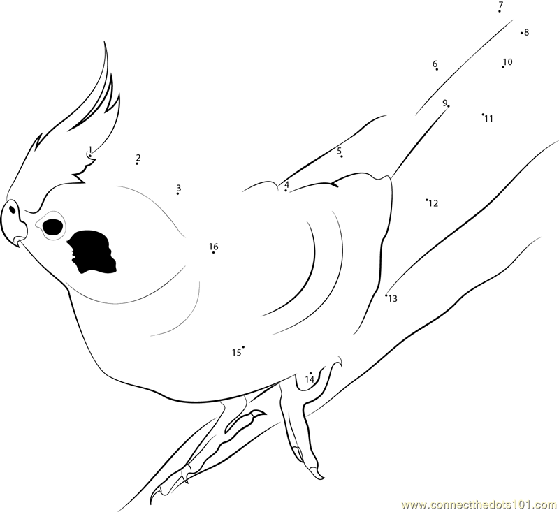 More Cockatiel dot to dot printable worksheets