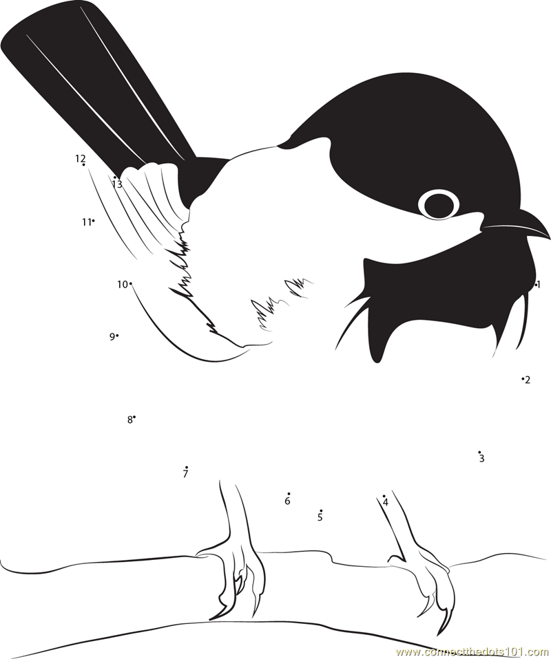 Chickadee State Bird of Massachusetts - Connect the Dots for Kids