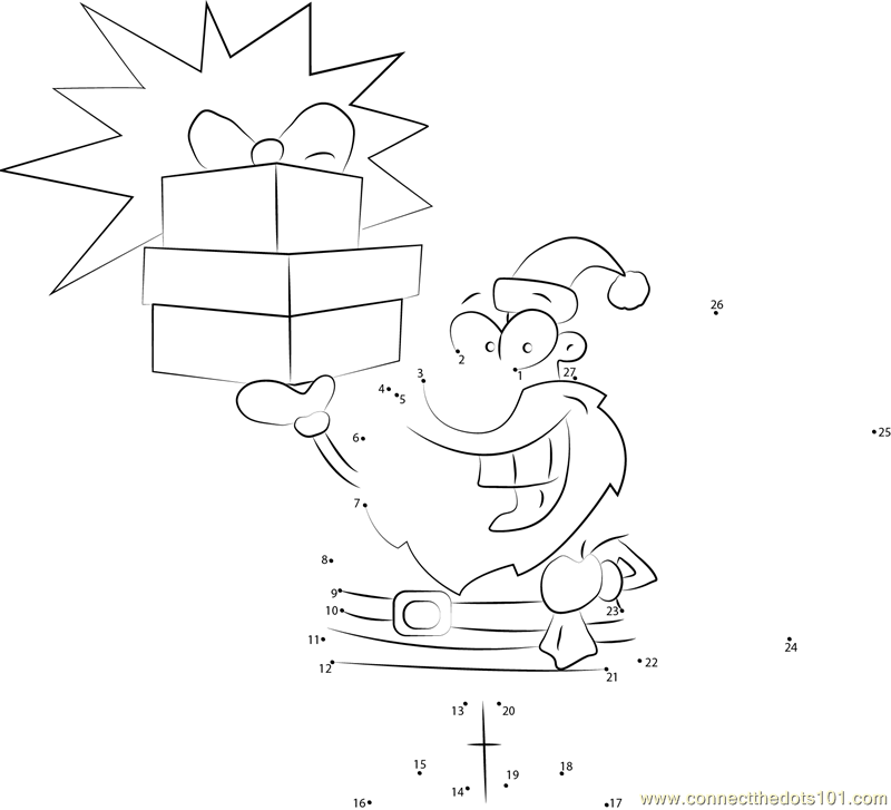 Santa Claus Holding Up a Bunch of Christmas Connect the Dots worksheet