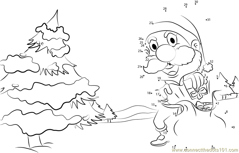 Santa Wishes Merry Christmas Giving Gifts in Snow Happy Holidays - Connect the Dots for Kids