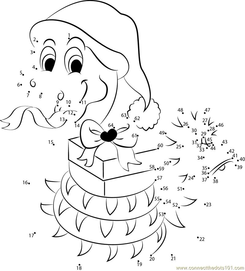 Cartoon Of A Cute Christmas Snake Ringing Connect the Dots worksheet