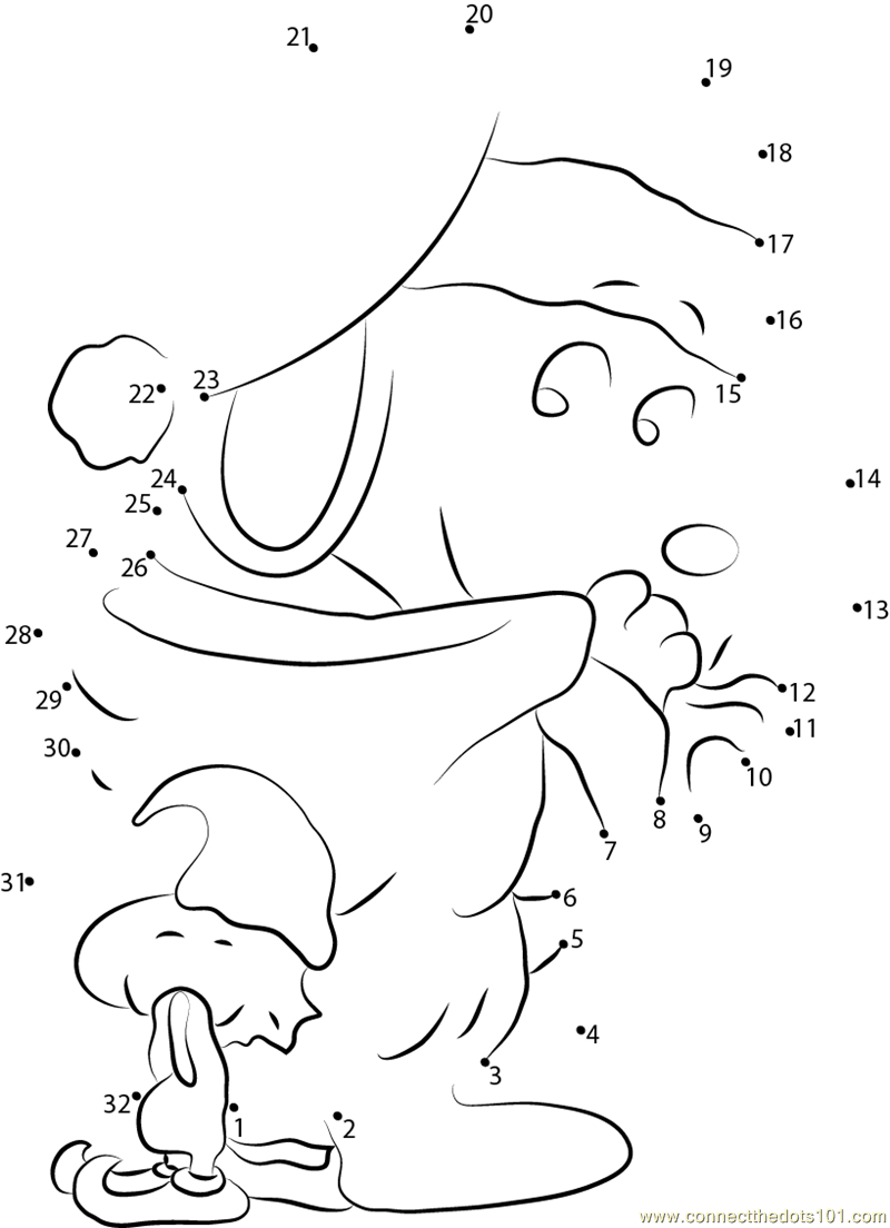 Snoopy Santa Gonig Gift Connect the Dots worksheet