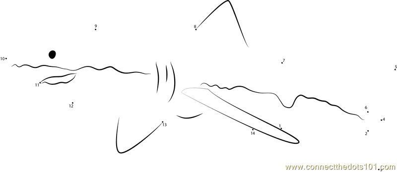 More Great white shark dot to dot printable worksheets