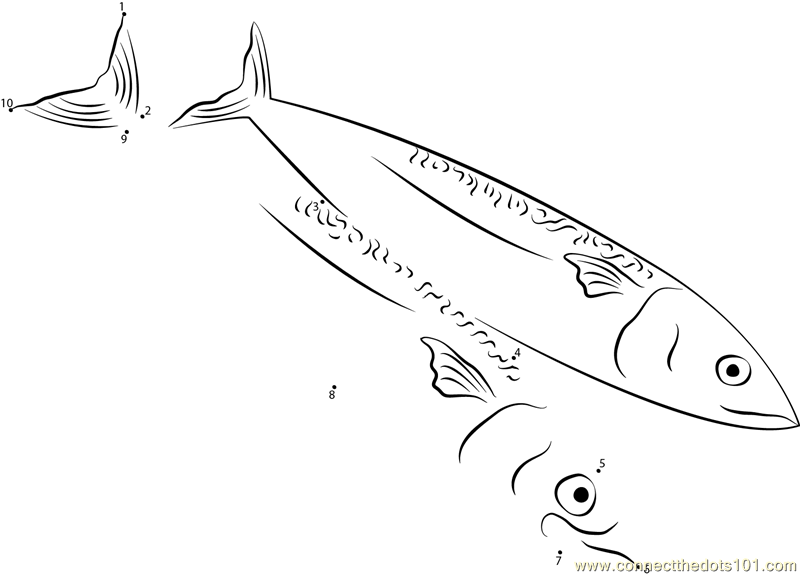 More Mackerel dot to dot printable worksheets