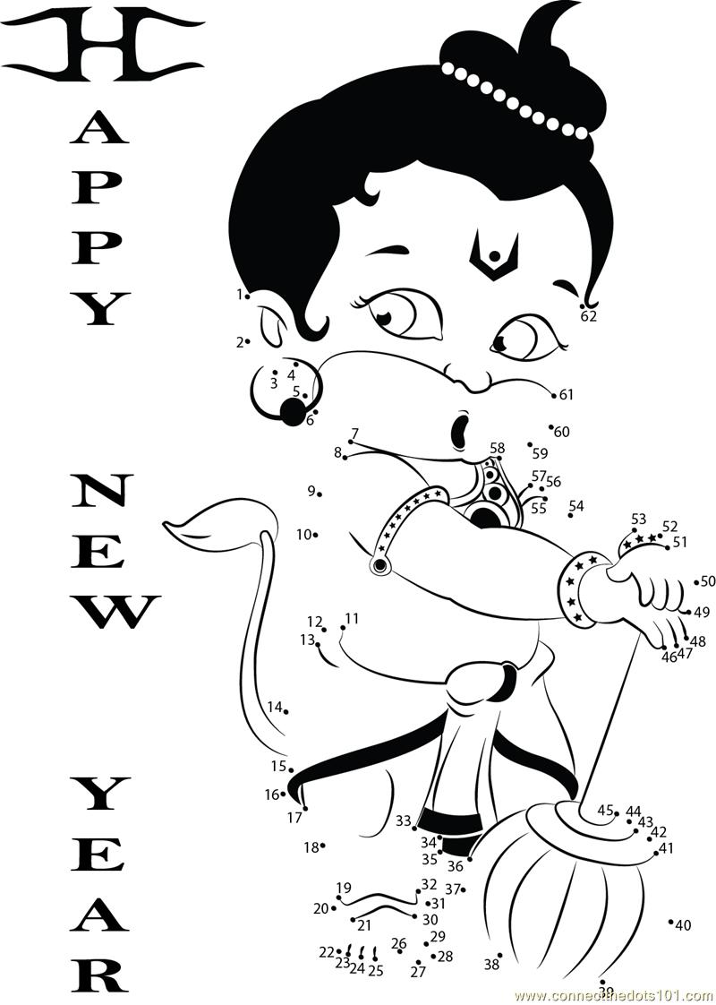 Hanuman wishing New Year Connect the Dots worksheet