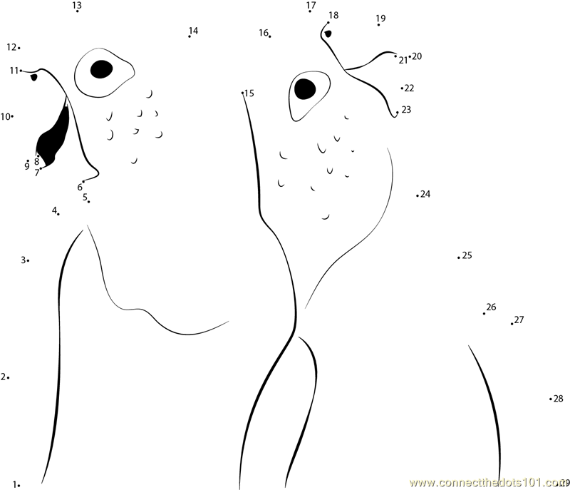 More Lovebird dot to dot printable worksheets
