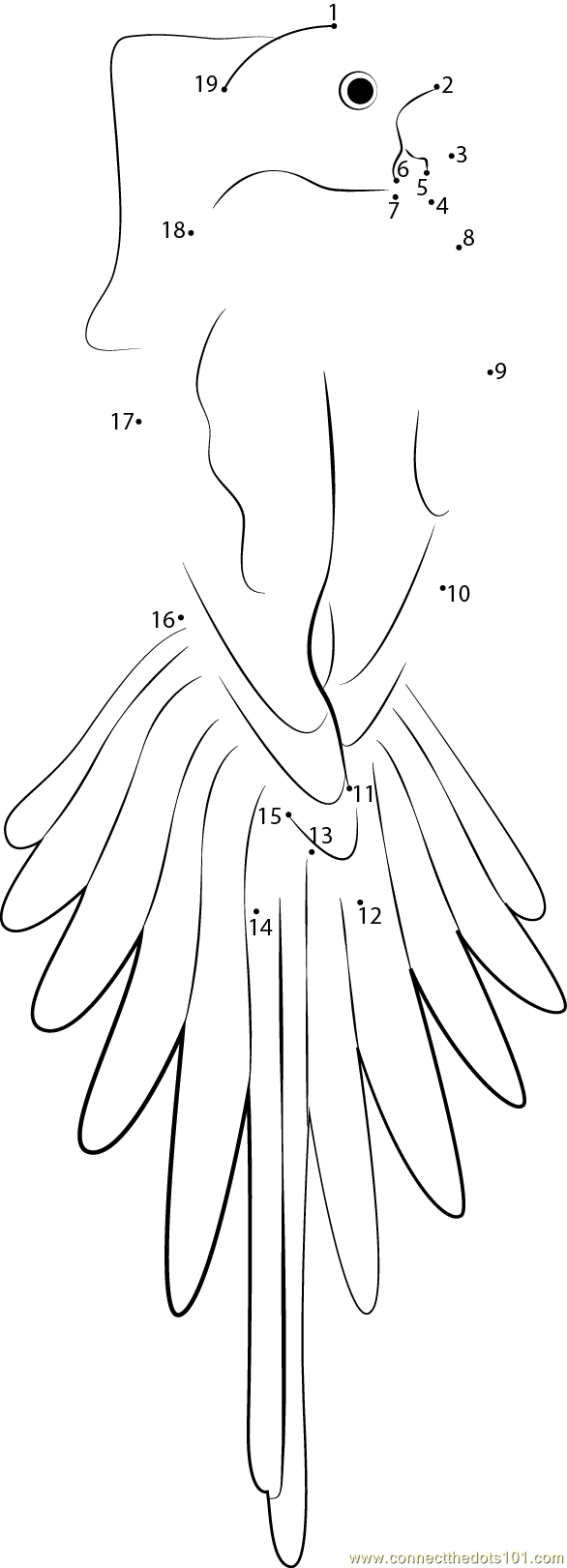 More Parrot dot to dot printable worksheets