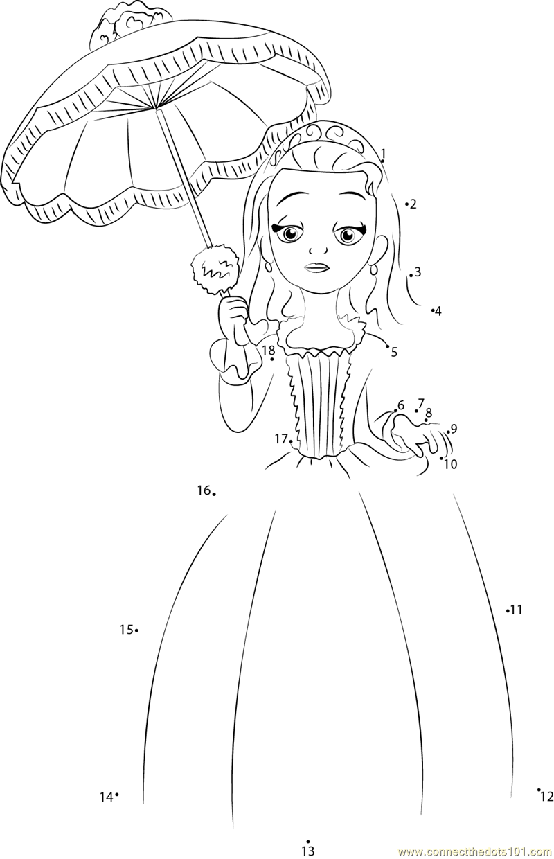 More Sofia the First dot to dot printable worksheets