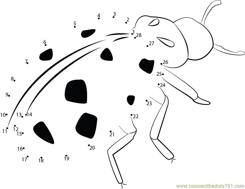 More Ladybug dot to dot printable worksheets