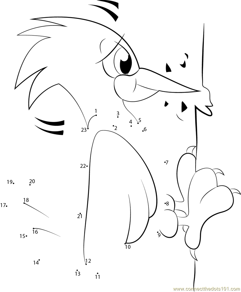 Cute Cartoon Woodpecker - Connect the Dots for Kids